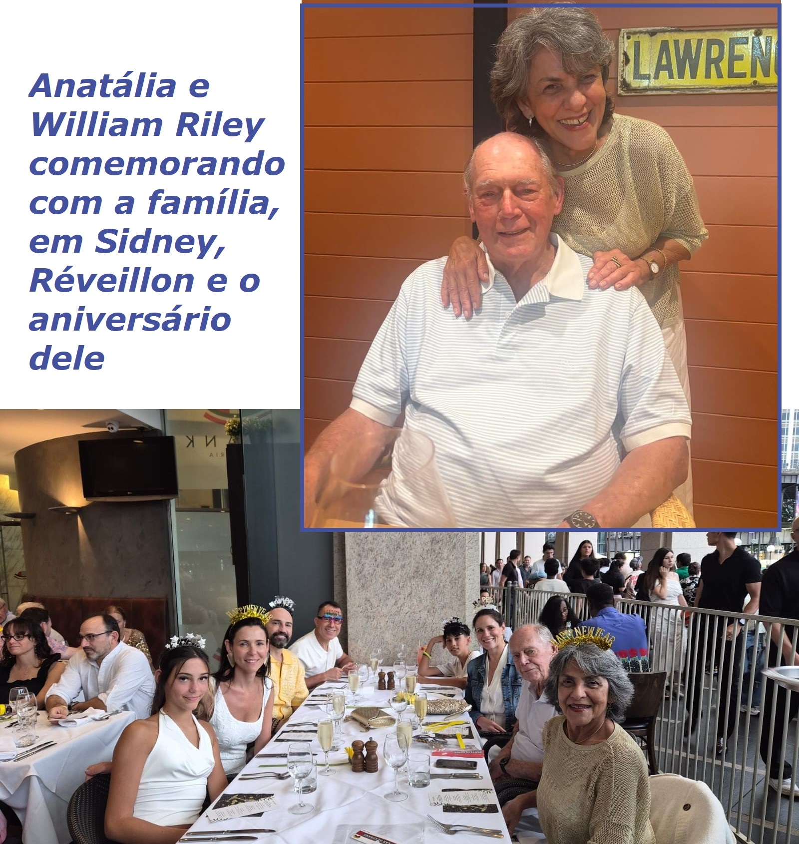 Rumo ao centenário – Natália e William Riley curtiram o Natal no Rio de Janeiro, acompanhados pela filha Daniele, o genro Sílvio e os netos, Bernardo e Ana Clara. Em seguida, o casal embarcou em um jato rumo à Austrália, onde desfrutaram de uma estadia de um mês, celebrando o Réveillon em Sydney na companhia das filhas Melissa e o genro Eduardo, além de Kareen e o genro Nick, com os filhos Maya e Thomas. Para completar essa temporada de festividades, a família se reuniu em um animado jantar, repleto bom humor, características marcantes dos Riley. A ocasião também foi uma celebração especial: o patriarca William comemorou seus 8.1 em grande estilo. Entre risadas e toques de afeto, todos brindaram à saúde e às muitas aventuras que ainda estão por vir, sonhando já com o centenário!