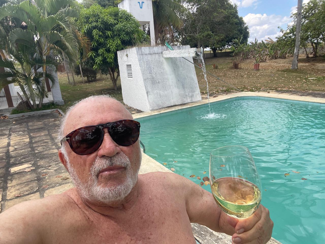 Ser e saber viver – À beira da piscina da sua fazenda, no município de Miguel Calmon, onde produz leite, meu amigo Valter Menezes, aprecia o maravilhoso Goutte D’Argent Chardonay, feito no Chile pelo Mago Pascal Marty. Aliás, ele vem fazendo o “sacrifício”, de avaliar a sequência de vinhos do Pascal, adquiridos recentemente na Euvinho. Na sequência, virão os Ser Merlot, Ser Cabernet Sauvignon e Ser Syrah. Ele sabe, ser e viver. Cheers!